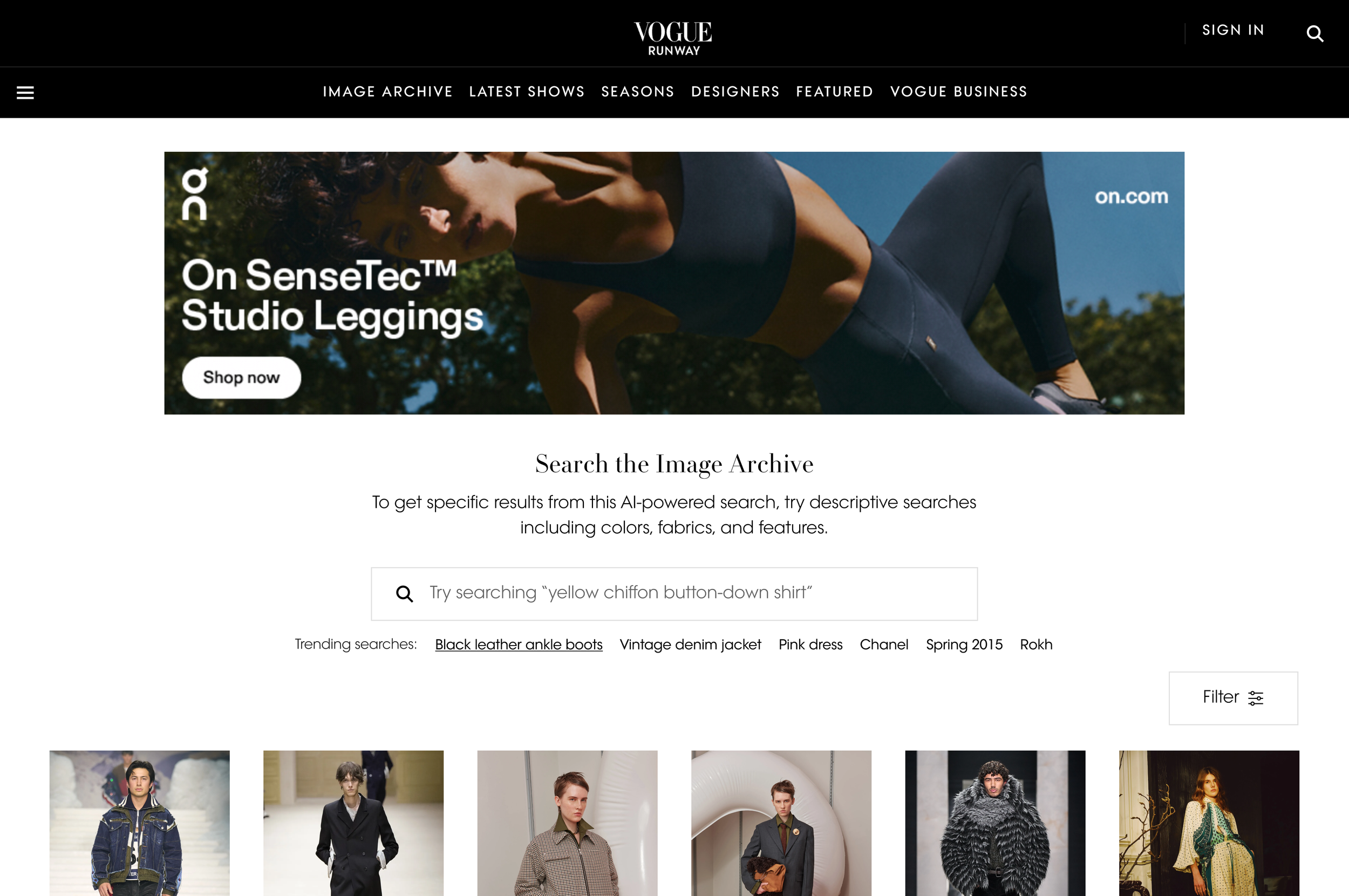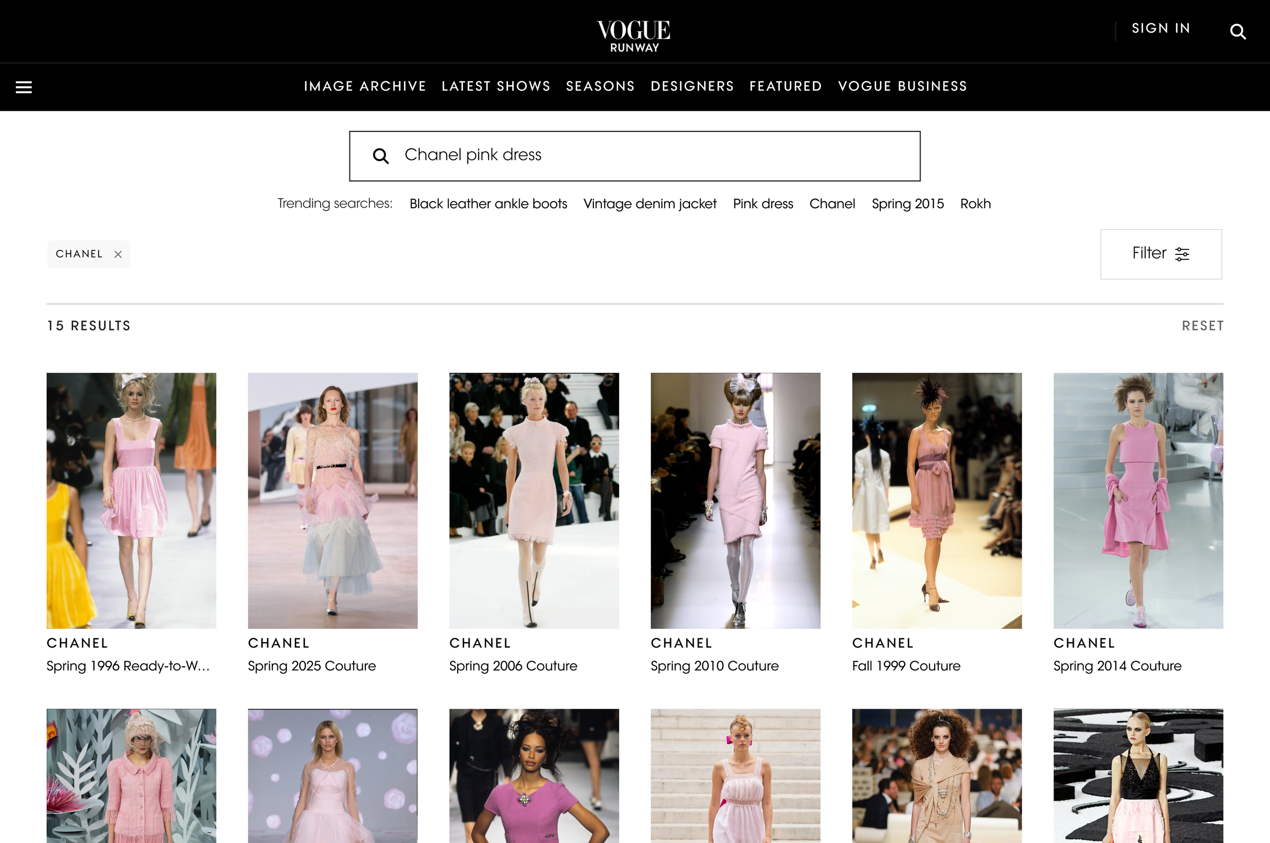 Vogue Runway’s entire archive available to browse: a powerful business tool for those in fashion, and Conde Nast’s first AI-powered search.
